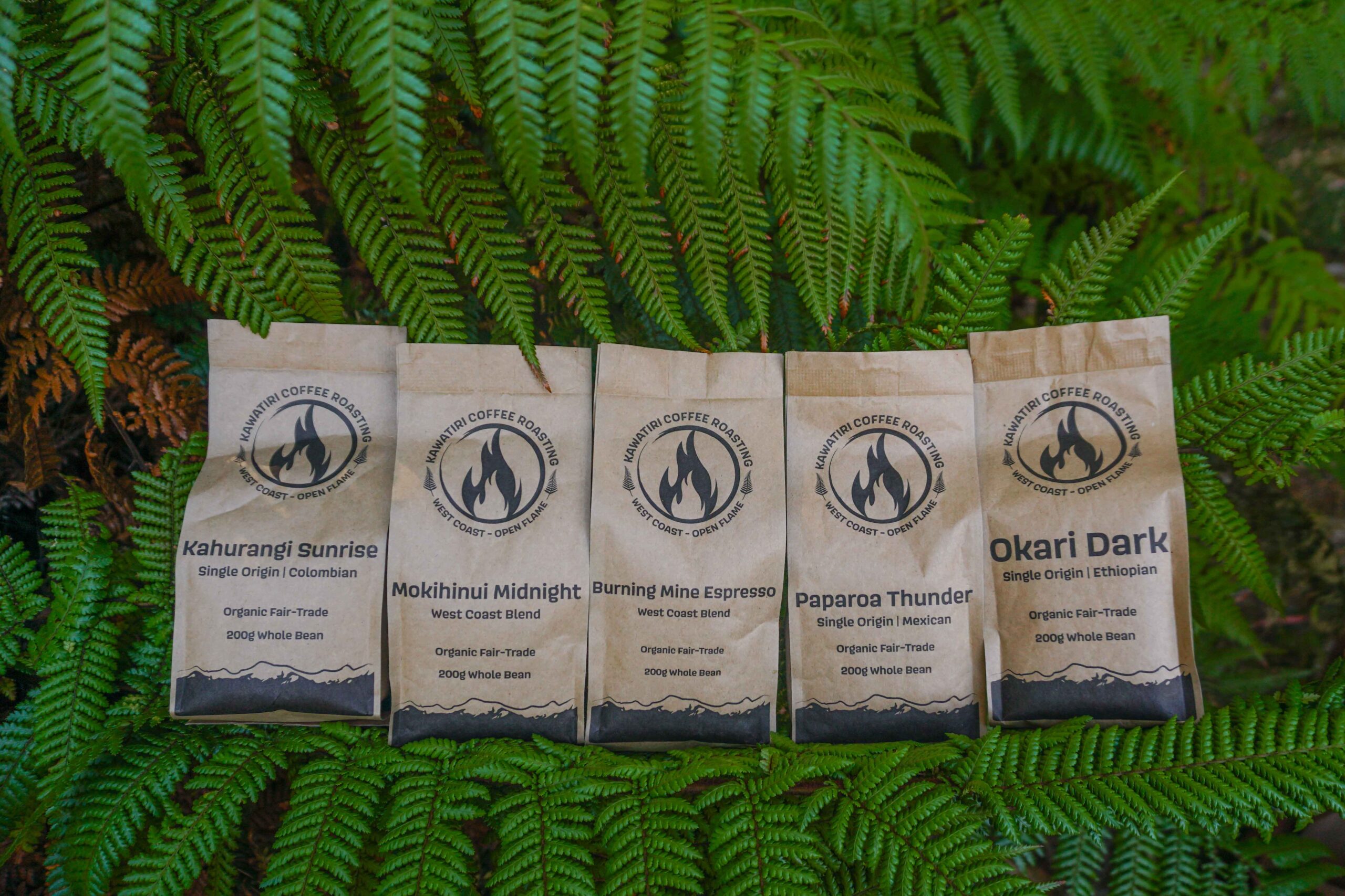Starter Pack – Paparoa Thunder, Kahurangi Sunrise, Okari Dark,Mokihinui Midnight Burning Mine Espresso, all in one tasty package (5x200g).